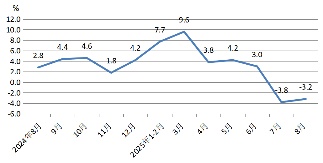 8月,消費(fèi)品“以舊換新”政策邊際效用持續(xù)遞減、關(guān)稅影響逐漸顯現(xiàn)、“反內(nèi)卷”等內(nèi)外壓力共振下,經(jīng)濟(jì)動(dòng)能走弱。8月社會(huì)消費(fèi)品零售總額同比增速從7月的3.7%進(jìn)一步下滑至3.4%,其中家電、家具零售增速均繼續(xù)下滑,而伴隨著9月起基數(shù)的顯著上升,后續(xù)其零售增速或進(jìn)一步減慢。8月固定資產(chǎn)投資累計(jì)同比增速再顯著下滑1.1個(gè)百分點(diǎn)至0.5%,其中房地產(chǎn)行業(yè)大部分?jǐn)?shù)據(jù)8月繼續(xù)走弱,基建投資(不含電力、熱力、燃?xì)饧八a(chǎn)和供應(yīng)業(yè))同比增速下滑1.2個(gè)百分點(diǎn)至2.0%;制造業(yè)投資增速下滑1.1個(gè)百分點(diǎn)至5.1%。工業(yè)生產(chǎn)總值同比增速則走弱0.5個(gè)百分點(diǎn)至5.2%。整體來看,內(nèi)外需走弱的影響下,后續(xù)外部環(huán)境復(fù)雜嚴(yán)峻,不穩(wěn)定不確定因素較多,經(jīng)濟(jì)壓力加大。下階段,要全面貫徹落實(shí)黨中央、國務(wù)院決策部署,強(qiáng)化宏觀政策調(diào)節(jié),有效釋放內(nèi)需潛力,深化改革開放,做強(qiáng)國內(nèi)大循環(huán),促進(jìn)國內(nèi)國際雙循環(huán),推動(dòng)經(jīng)濟(jì)平穩(wěn)健康發(fā)展。