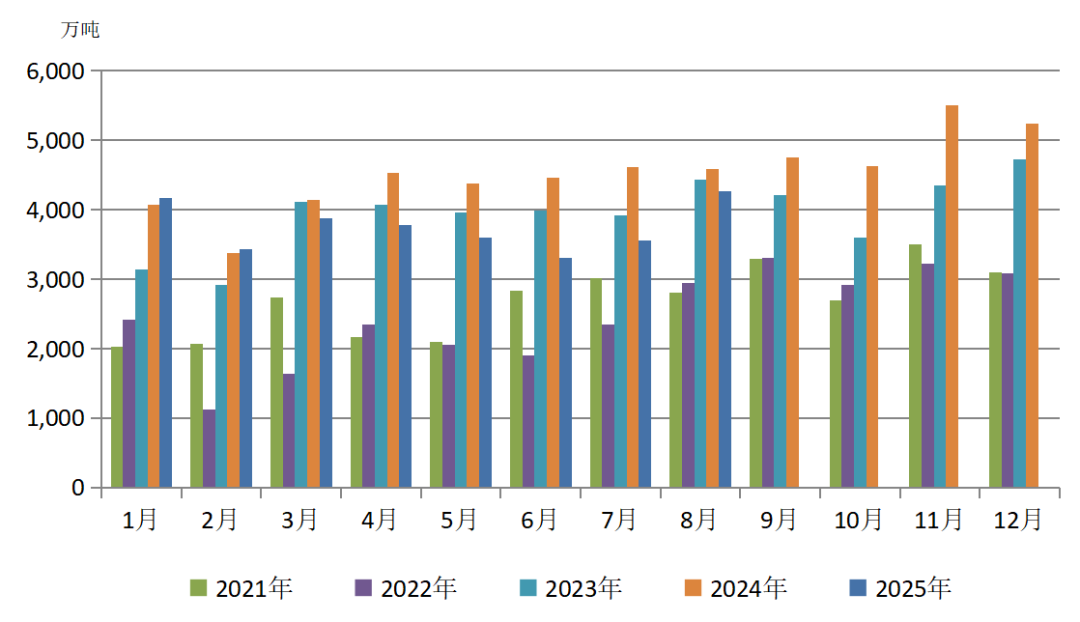 圖3 2021—2025年煤炭月度進(jìn)口量